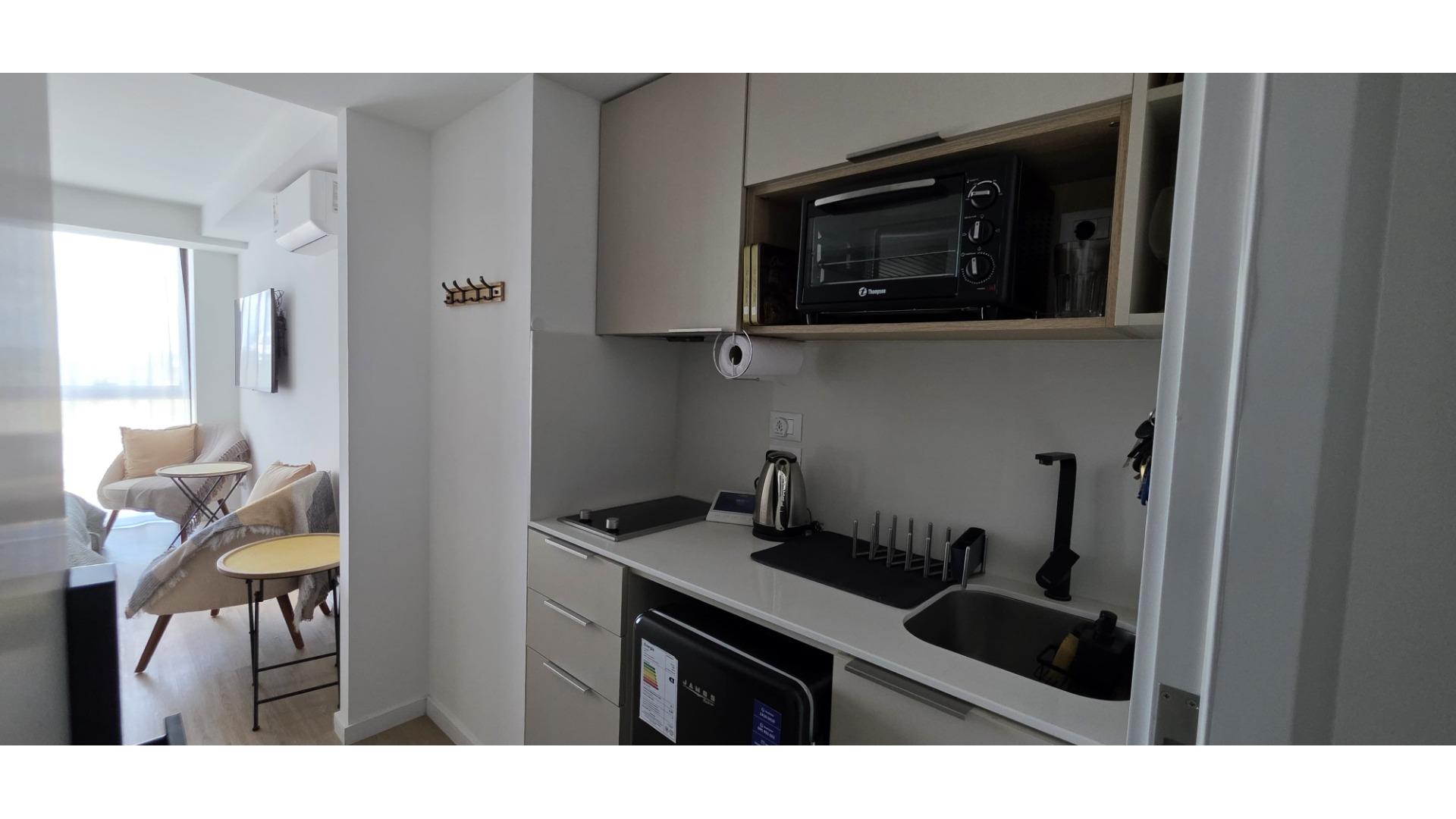 En el Edificio MORE, en Parada 22 de Avda Roosevelt, frente a la terminal de Omnibus de Maldonado. Este moderno monoambiente con vista abierta. MUY luminoso. Tiene una cama Queen Size rebatible, lo que permite tener un living amplio. Kitchenete y Baño. El apartamento está TOTALMENTE equipado con ropa blanca, electrodomésticos, platos, cubiertos y utensilios para 2 personas. El amueblameinto y la decoración han sido diseñados con muy buen gusto. En el Edificio hay amenities disponibles: Pileta Descubierta y Cubierta Climatizada, Sauna, Gimnasio, Parriilero, Sala de Yoga. El Edificio MORE tiene en su basamento el Shopping Atlántico, el más moderno de Punta del Este. PARA DISFRUTAR UNA SEMANA EN PUNTA DEL ESTE!!!!!!!!. Excelente apartamento, excelente ubicación, cerca de la Playa, ideal para descansar y para no descuidar el Shopiing!!.